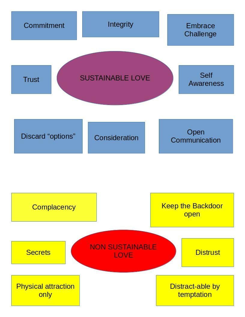 To sustain love you must practise self awareness day in day out. The novelty of intimate love wears off as you forget to be grateful for what that partner offers you.